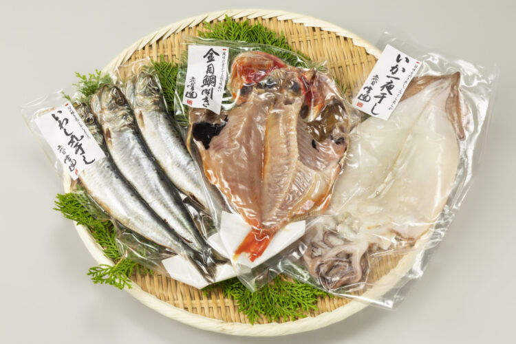 那珂湊伝承の干物(金目鯛、真いか、真いわし)