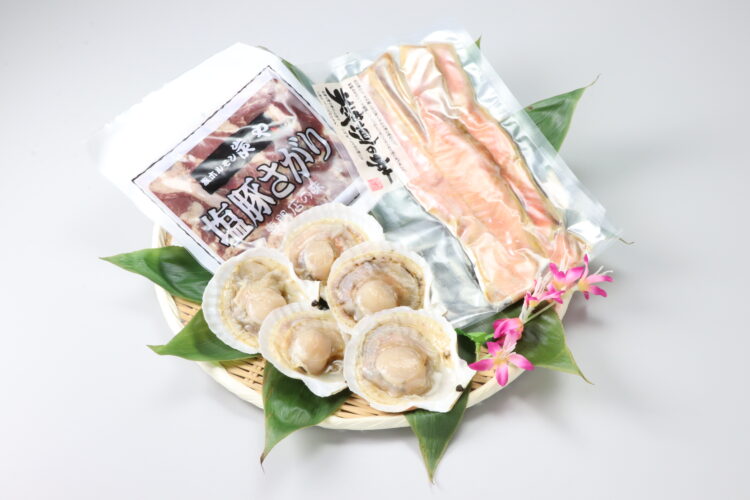 サーモンステーキ1枚、味付けラム300g、若鶏味付けハム220g