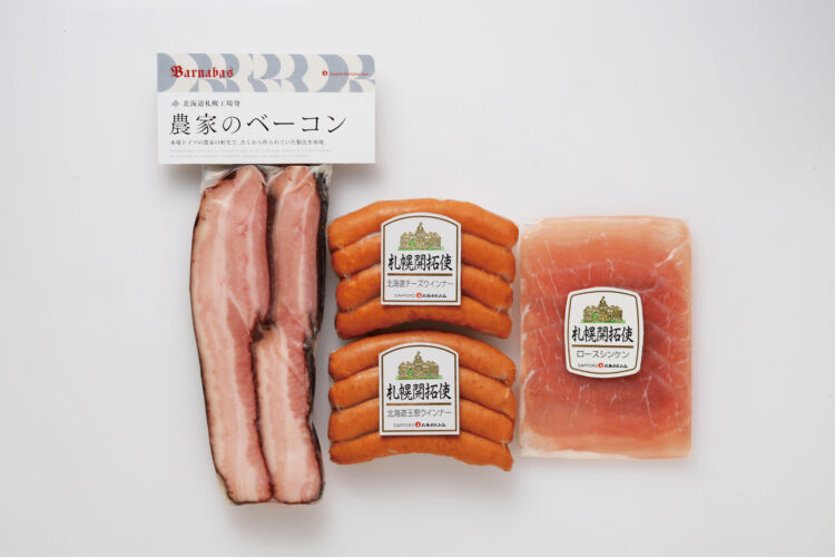 農家のベーコン126g、チーズウィンナー100g、玉葱ウィンナー100g、ロースシンケン40g