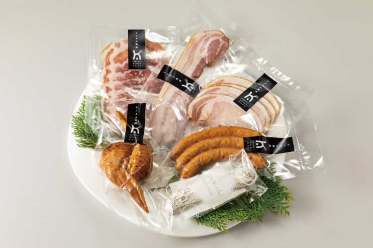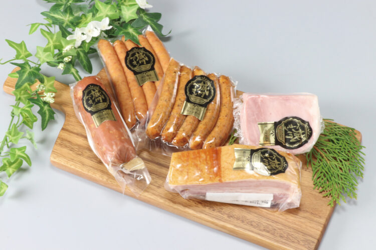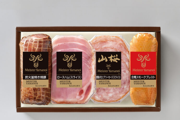 炭火釜焼き焼豚160g、ロースハム(スライス)40g、山桜燻製ボロニアソーセージ(スライス)40g、合鴨スモークブレスト130g