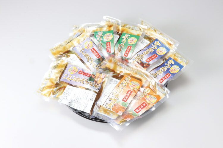 ぶりの旨煮付、さばの旨味噌煮、いわし旨みぞれ煮、かつお旨土佐煮 各100g×2P