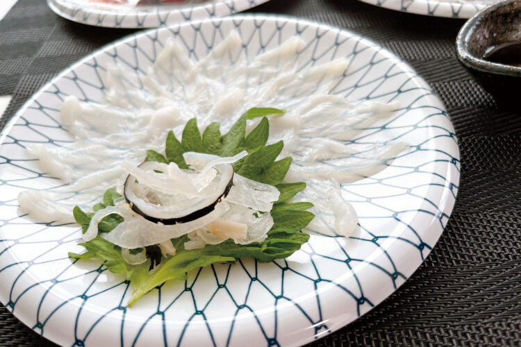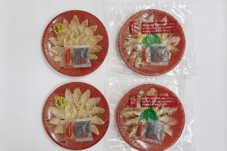 フグたたき30g×2(マフグまたはゴマフグ)、のどぐろ炙り刺し30g×2、ポン酢14g×4、もみじおろし2.5g×4
