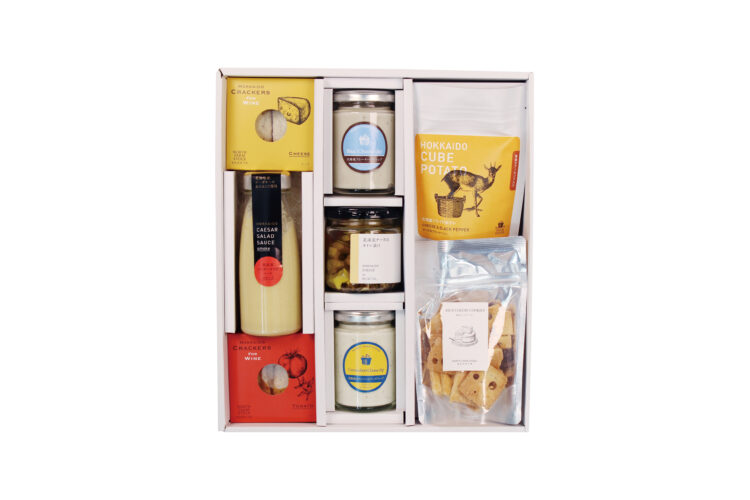 クラッカー(チーズ・トマト)、シーザーサラダソース、ブルーチーズディップ、チーズのオイル漬け、カマンベールチーズディップ、キューブポテト(チーズ&ブラックペパー)、香るチーズクッキー 各1個