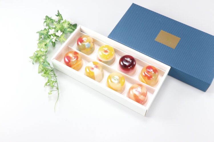ミックスゼリー125g(ピンクグレープフルーツと西洋梨×1個、ピーチブロッサム×1個、ホワイトリボン×1個、ミックスジュエリー×2個、レッドベリー×1個、パールフラワー×1個、カラフルボール×1個)