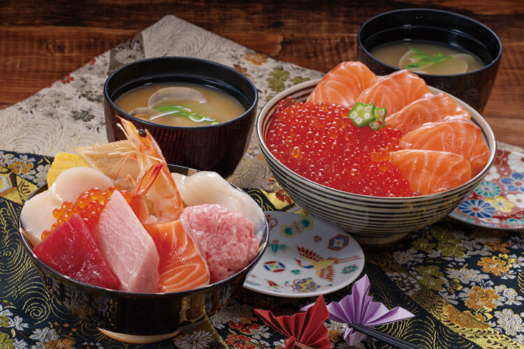 10種の海鮮が入った海鮮丼:2食分(1食150g)、いくらサーモン丼:2食分(1食130g)